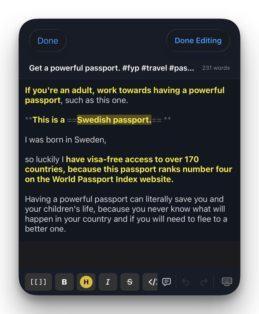 You can bold, highlight, add wiki-links, and line spacing, etc.